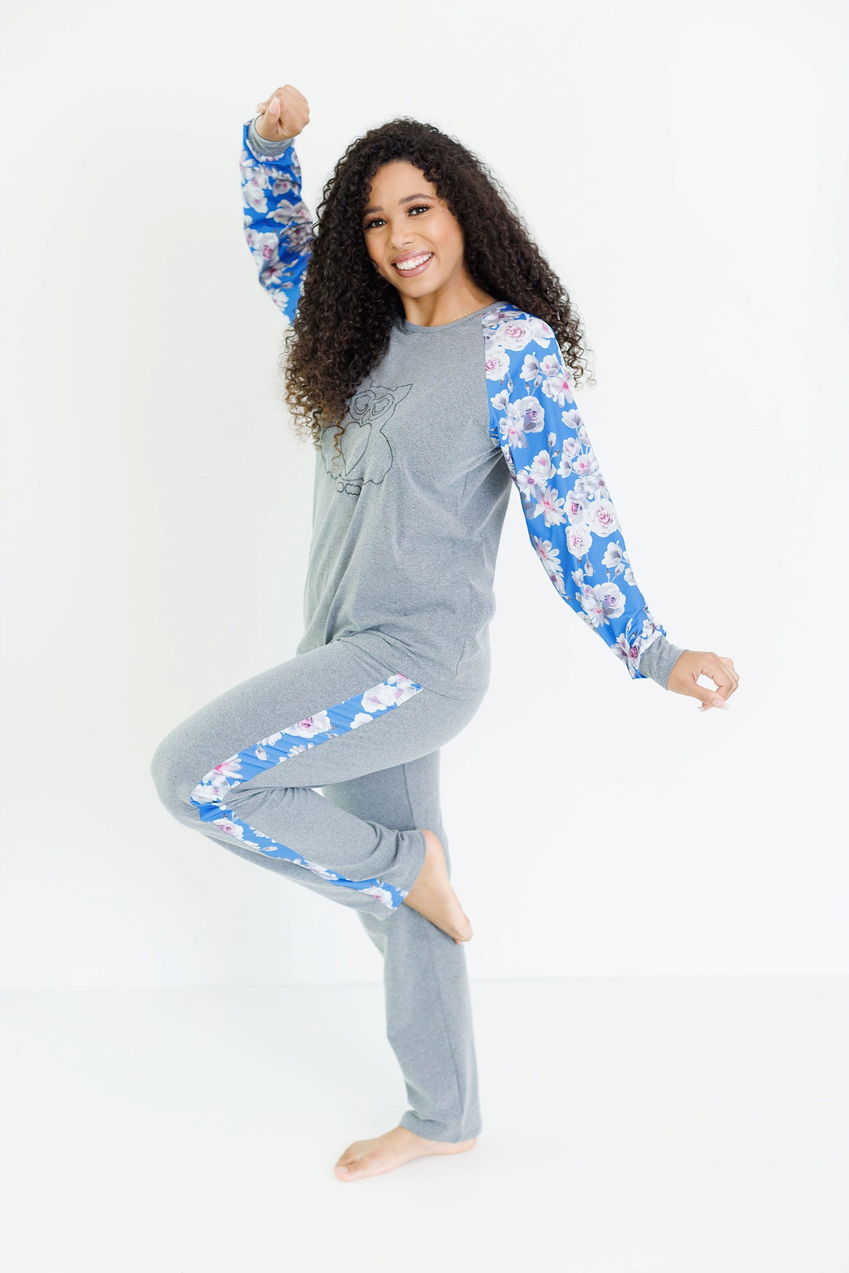 Pijama longo, confeccionado em malha e com detalhes em estampas. Sendo o azul com estampa em liganete e o branco em lycra.