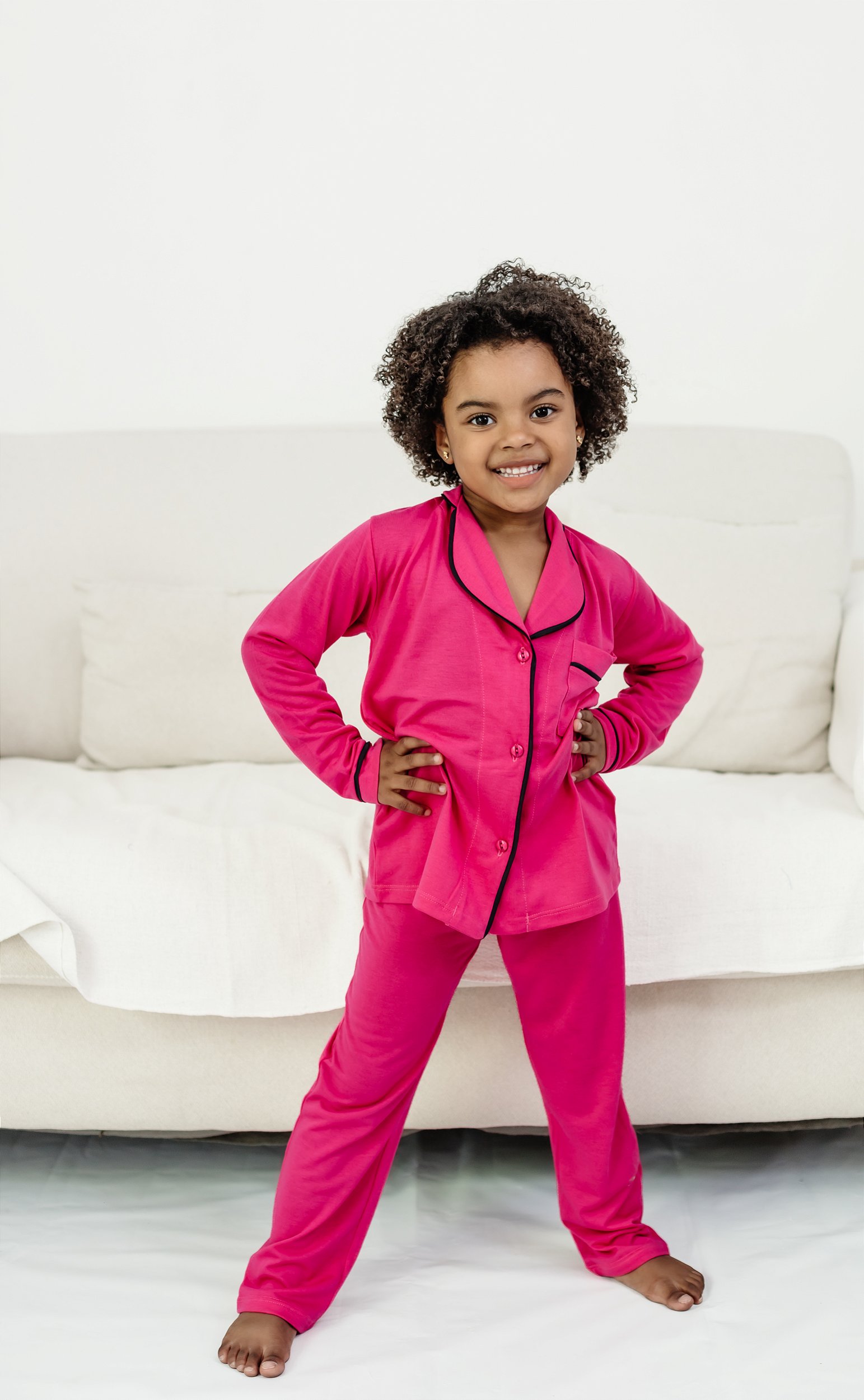 Pijama infantil 10-14 estilo americano com aplicação de botões e "vivo"