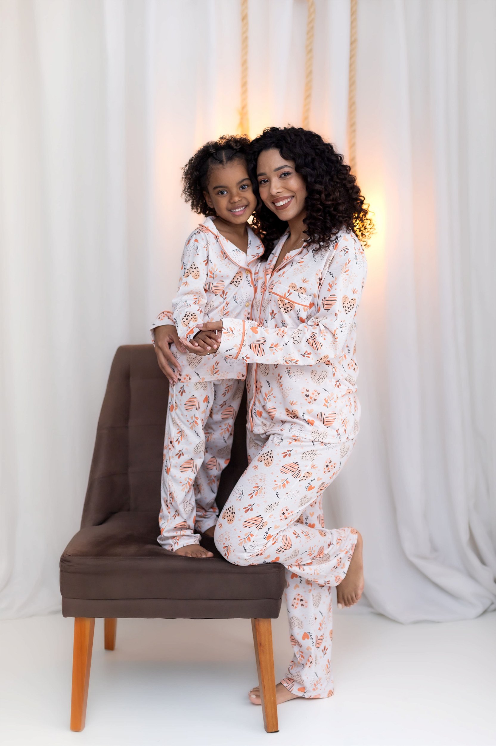 Pijama infantil Longo estilo Americano em tecido meia malha estampado.